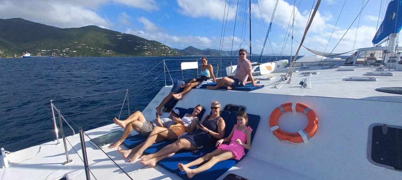 Cuan Law is especially well suited for private scuba group vacations in the BVI. As a large, professionally crewed sailing catamaran, it provides the space, stability, and comfort groups appreciate, both above and below deck.